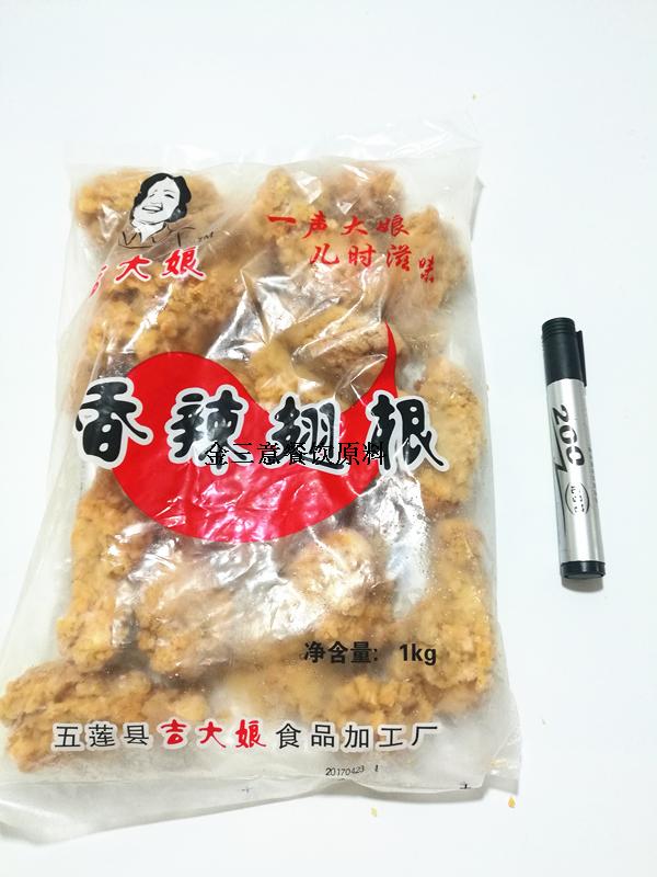 配料表: 精選雞翅根、小麥粉、白砂糖、黃酒、食鹽、味精、香辛料、磷酸鹽、香辣粉等